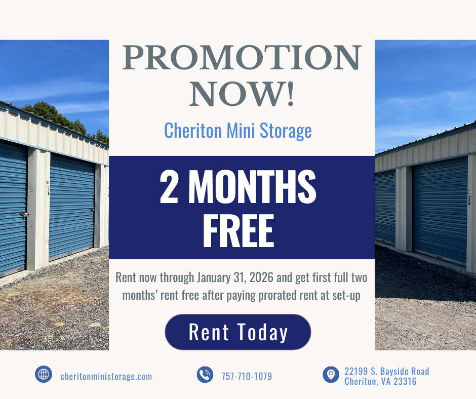 Welcome to Cheriton Mini Storage! Our storage facility is located in Cheriton right next to Cape Charles! We are your neighborhood go to place for business and household storage. Community is important to us! We will prove that with our exceptional customer service. Our facility offers a variety of features to meet your needs. We are certain you can find a solution that works for you at Cheriton Mini Storage.